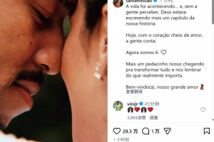 體育資訊3月21日訊 米利唐與妻子泰納·卡斯特羅聯(lián)合更新社媒動態(tài),宣布泰納·卡斯特羅懷孕。