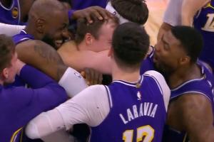 >>等你再建紫金王朝!賽后全隊(duì)圍著東契奇激情慶祝" />
