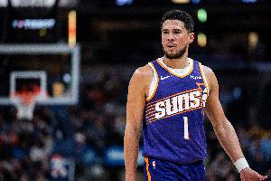 第一節(jié),太陽后衛(wèi)布克手感冰涼,出場(chǎng)9分鐘6投0中,三分1中0沒得分,拿到3籃板2助攻,正負(fù)值+10。