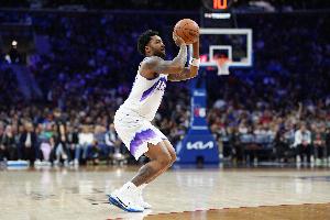 本場(chǎng)比賽森薩博出戰(zhàn)37分鐘31投17中,三分9中4,罰球4中3砍下41分4籃板3助攻,出現(xiàn)5次失誤,正負(fù)值-21。