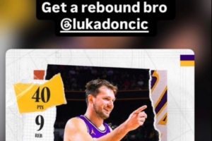 賽后,隊友拉拉維亞轉(zhuǎn)發(fā)了東契奇本場數(shù)據(jù)海報,并且寫道:“兄弟,再搶個籃板吧?!?/p>