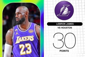 本場(chǎng)比賽,湖人球星詹姆斯上場(chǎng)34分鐘,14投13中得到30分5籃板2助攻1搶斷1蓋帽。詹姆斯本場(chǎng)的投籃命中率高達(dá)92.9%,追平生涯最高紀(jì)錄。