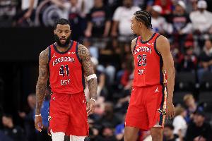 本場比賽,鵜鶘首發(fā)五人組多點(diǎn)開花,都得分上雙,合砍84分:墨菲27分5板2助1斷,薩迪克·貝20分6板6助1斷,錫安15分5板2助3斷,米西11分11板4助1帽,赫伯特·瓊斯11分3板2助2斷。