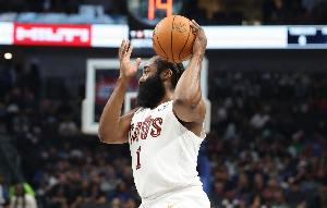 本場(chǎng)比賽,哈登是當(dāng)?shù)之?dāng)媽,進(jìn)攻組織一把抓,全場(chǎng)23中10、其中三分13中7,轟下騎士生涯新高的36分,外加7板9助!