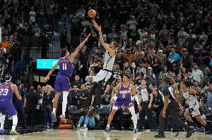 落后1分敢壓時間!文班亞馬連續(xù)晃動后運(yùn)一步干拔后仰準(zhǔn)絕殺太陽