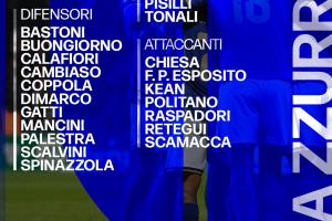 后衛(wèi):巴斯托尼(國米)、布翁喬爾諾(那不勒斯)、卡拉菲奧里(阿森納)、坎比亞索(尤文)、迭戈·庫博拉(巴黎FC)、迪馬爾科(國米)、加蒂(尤文)、曼奇尼(羅馬)、帕萊斯特拉(卡利亞里)、斯卡爾維尼(亞特蘭大)、斯皮納佐拉(那不勒斯)